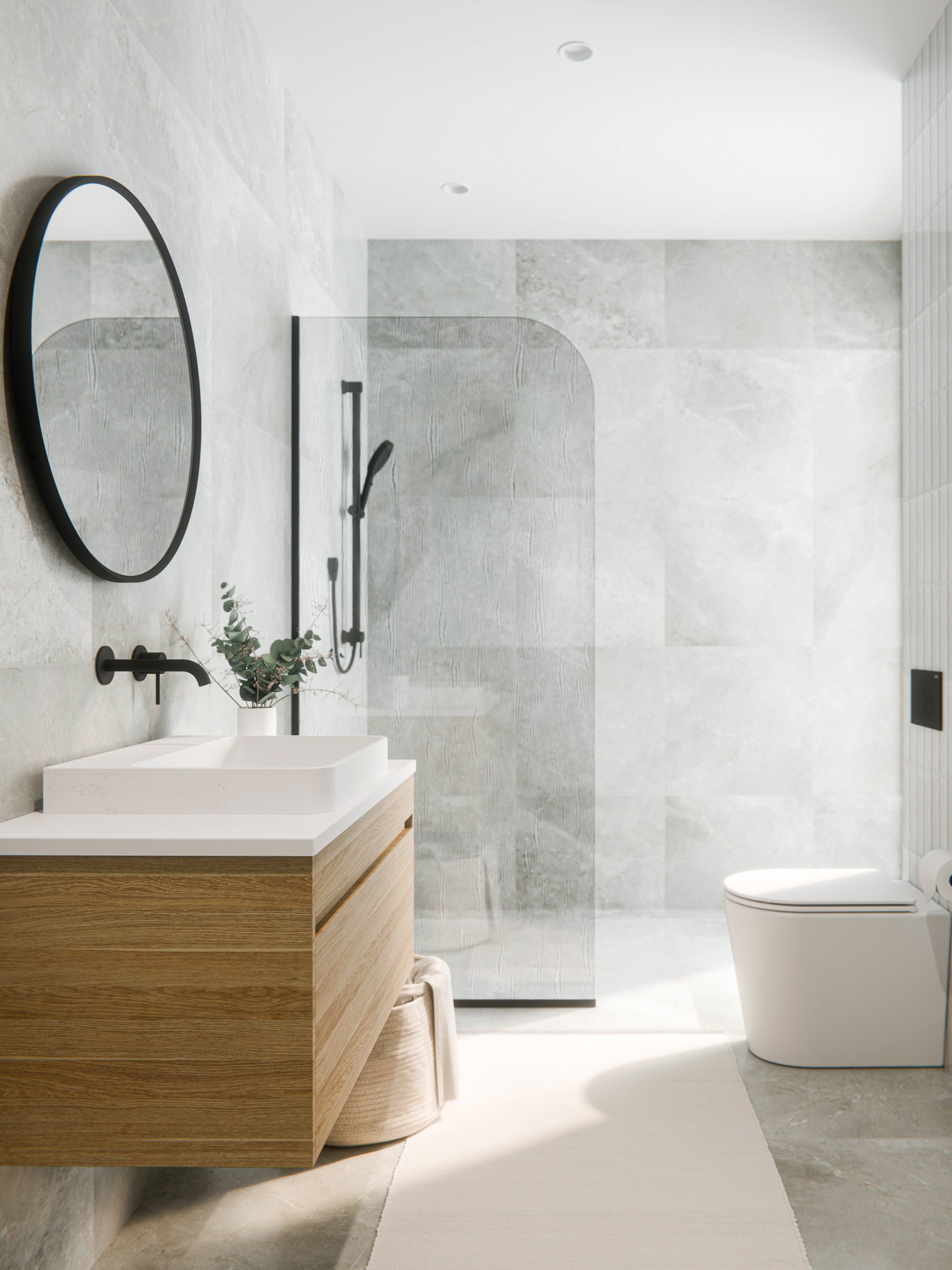 The Aspect Round Framed Mirror is a simple way to create a focal point in your bathroom, using its curved shape to soften the feel of sharp-edged cabinetry or tiling.